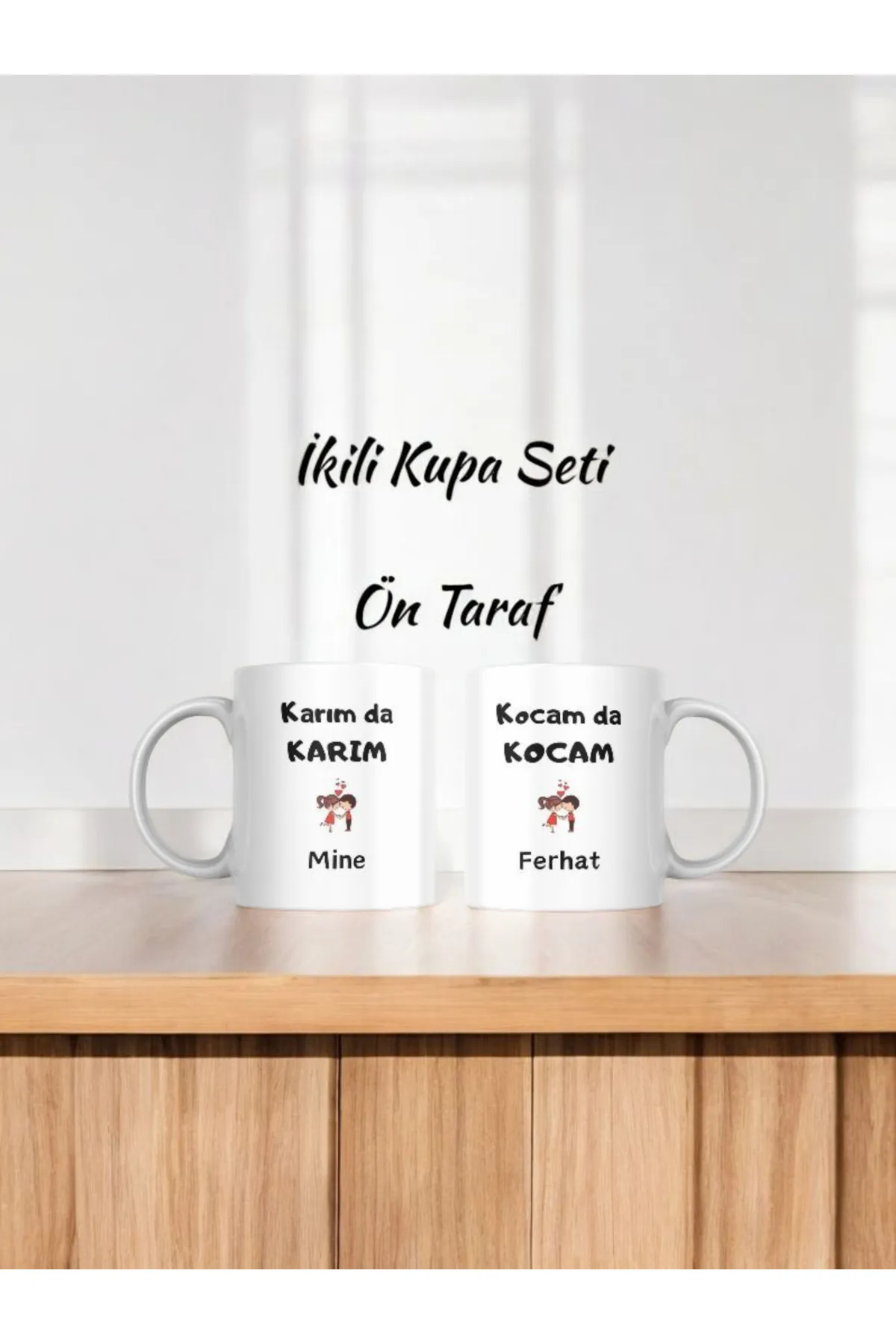 Miracix MRCKLT32 Kişiye Özel Kocamda Kocam Karımda Karım Fotoğraflı İsimli 2'li Kupa Bardak