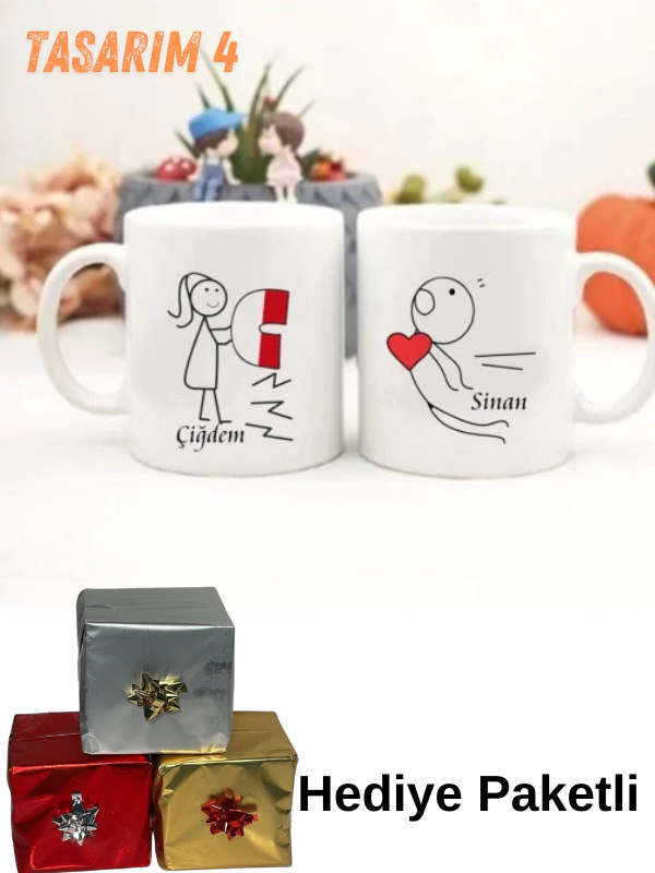 Miracix MRCSVG698 2 Adet Sevgililer Gününe Kişiye Özel, Baskılı Kupa Bardak Resimli Tasarım